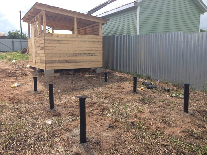 Сваи 57 мм выдерживают нагрузку 800-1500 кг и подходят для установки на пучинистом грунте с неровностями. Используются для возведения заборов и небольших построек: гаражей, беседок, гаражей, бань и т.д.